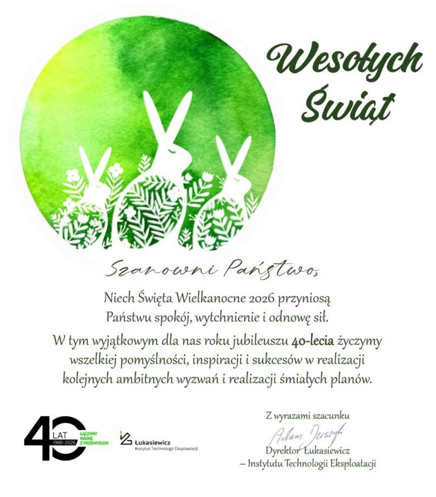 Sieć Badawcza Łukasiewicz – Instytut Technologii Eksploatacji od czterdziestu lat specjalizuje się w kreowaniu innowacyjności w obszarze budowy i eksploatacji maszyn, bezpieczeństwa technicznego i ochrony środowiska, a także opracowywaniu modelowych rozwiązań dotyczących programów ustawicznego kształcenia i doskonalenia kadr dla innowacyjnej gospodarki oraz transferu zaawansowanych technologii do zastosowań przemysłowych, które to zagadnienia stanowią podstawę strategii rozwoju Unii Europejskiej, w tym również Polski. Ukierunkowanie na priorytetową w Europie i w kraju problematykę badawczą umożliwiło podejmowanie i rozwiązywanie w Instytucie zagadnień poznawczych i aplikacyjnych nowatorskich naukowo oraz wyjątkowo efektywnych ekonomicznie i społecznie.